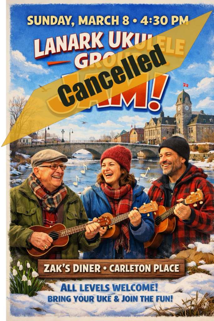 The set list for our March 8th ukulele jam at 4:30 PM at Zak’s Diner in Carleton Place is now available!