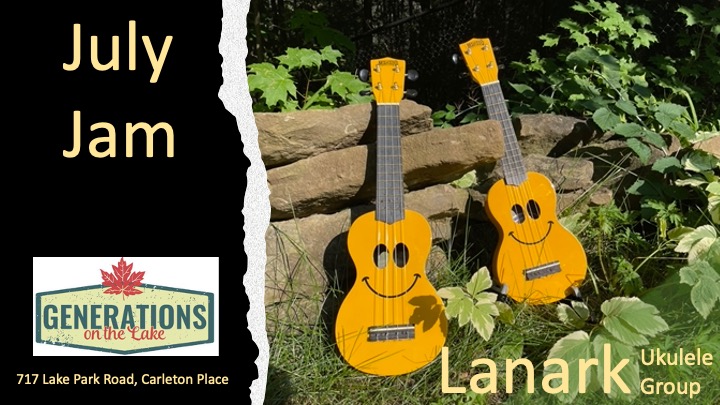 We will be jamming outdoors under the big tent along the shores of the Mississippi Lake. Rain or shine … there is lots of space inside under the tent with tables and chairs for all. Parking is plentiful for those arriving by car, the dock is in for those that prefer to take a boat and Generations is even close to the Ottawa Valley Recreational trail for those who choose to come by bike!